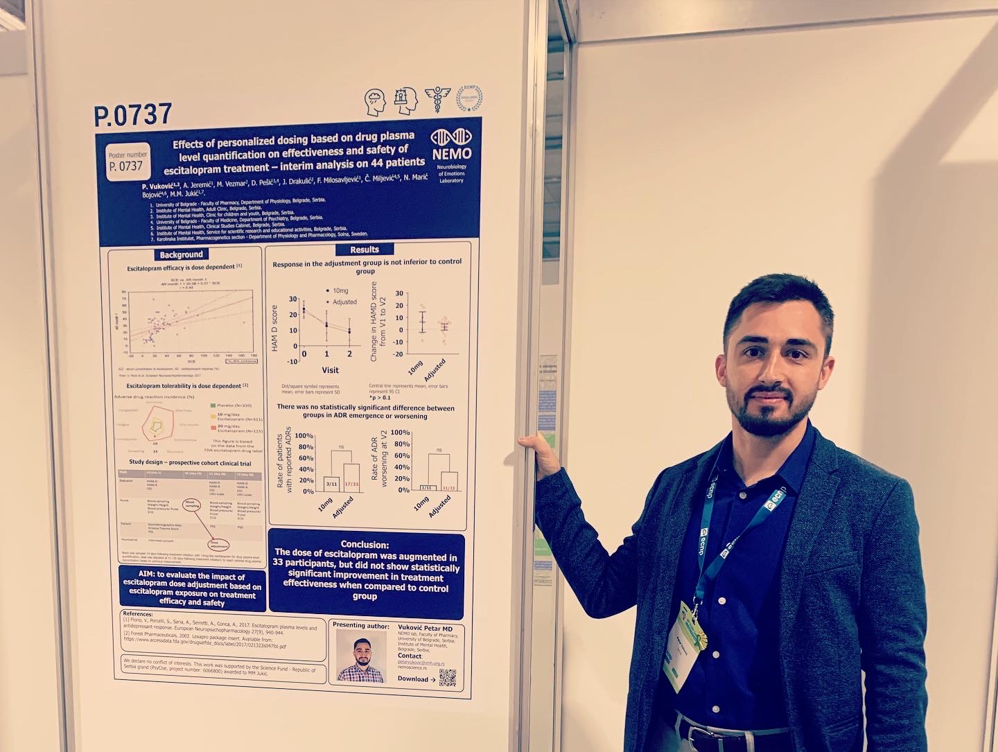 На овогодишњем ECNP др Петар Вуковић је представљао апстракт рада и Постер на тему: "Ефекти персонализованог дозирања есциталопрама на основу квантификације нивоа лека у плазми на ефикасност и безбедност терапије код 44 депресивна пацијента".